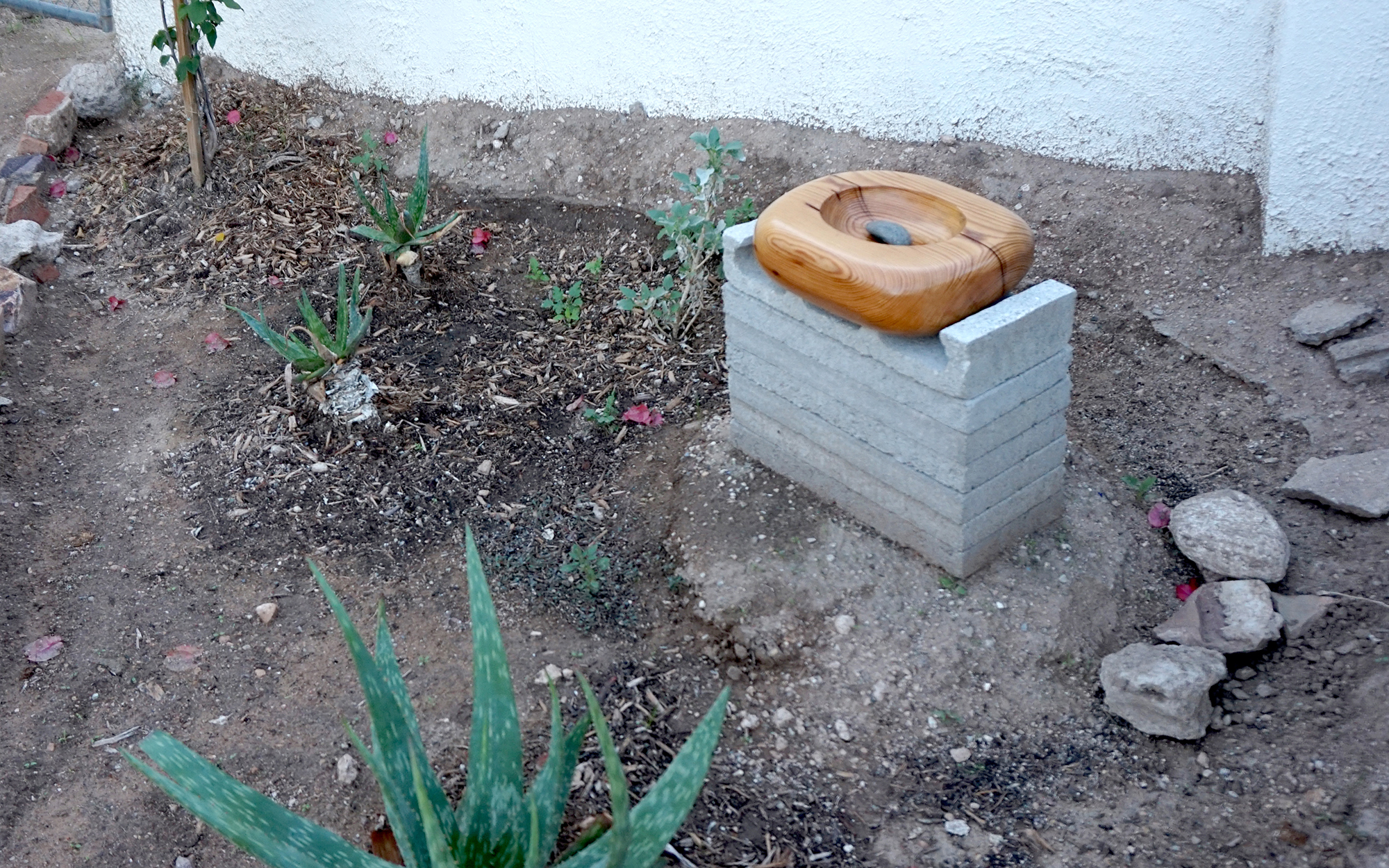 With the shifting nature of organic matter, weather, and non-archival materials as well as the slowness of seasons and landscaping projects, SS GOTSY is an experiment that makes use of the ephemeral. A long-term installation of works by artists from around the country, SS GOTSY takes on the role of a permanent collection in an essentially temporary institution.